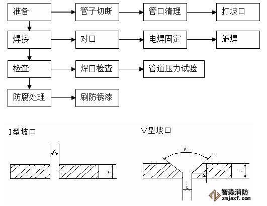 坡口機開口,標準美觀;坡口氧化層與雜質打磨干凈,坡口根部留有3mm縫隙,便于焊透,管道組對平直,無錯邊,開完坡口后要及時焊接。