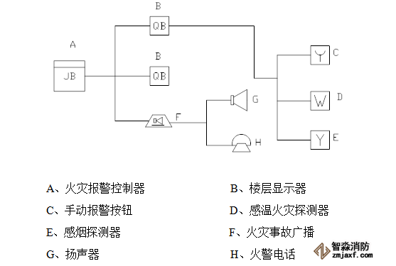 火災(zāi)自動報(bào)警系統(tǒng)的基本結(jié)構(gòu)如圖: