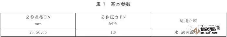 室內消火栓的基本參數見表1。