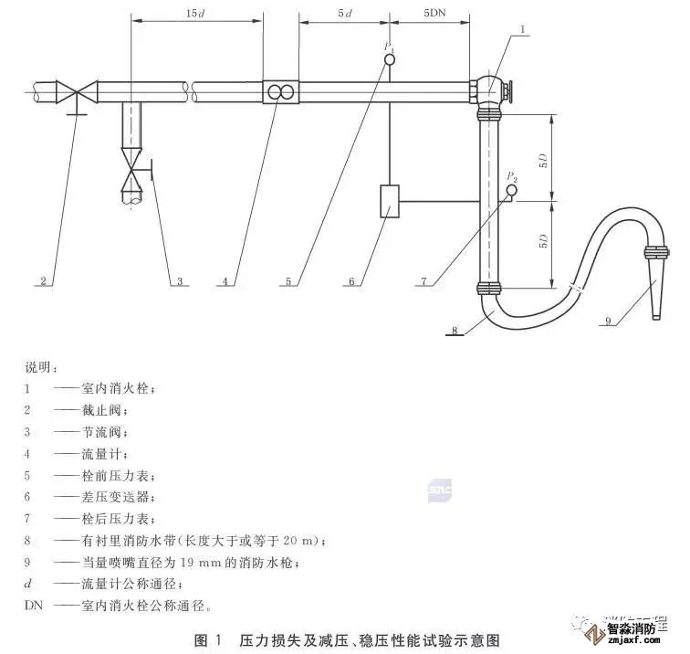 除減壓、減壓穩壓型室內消火栓外,其他型室內消火栓應按6.12規定進行試驗,在進口流速為2.5 m/s條件下,因水力摩阻而產生的壓力損失不應超過0.02 MPa。