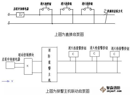 消火栓按鈕啟動消防泵組分為直接啟動消防泵和間接啟動消防泵,原先許多工程因規范要求不明確,部分采用消火栓按鈕間接啟動消防泵的控制方式;消火栓啟泵按鈕從接線方式分兩種,為消火栓按鈕并聯接線啟動消防泵和按鈕串聯接線啟東消防泵。
