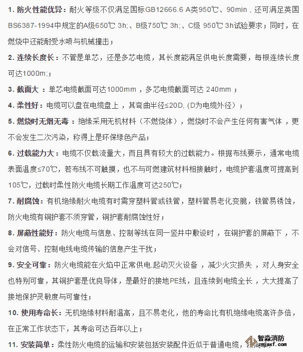 12. 安裝費用低:柔性防火電纜由于制作工藝先進,安裝簡單,在同等條件下其綜合費用比礦物絕緣電纜的費用明顯降低。