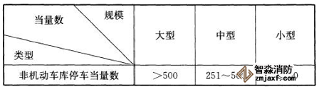注1:對于非機動車庫來講,主要考慮以自行車作為主要停駛車輛,因此以自行車為標準當量作為劃分依據,其他類型非機動車輛如三輪車、電動自行車、機動輪椅車等停放在庫中時應按相應當量換算系數進行折算。