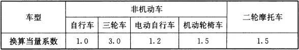 表6.1.2 非機動車及二輪摩托車車輛換算當量系數