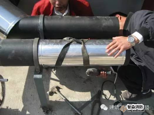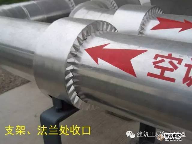 2、垂直管道保溫接口處, 外包一層100~150mm寬相同保溫層,以提高接口處保 溫的薄弱環節。