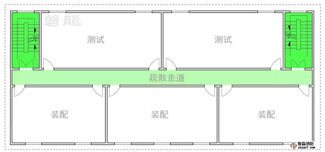 1、在圖示5的廠房建筑中,同樣應(yīng)采用“房間”→“疏散走道”→“安全出口”的基本設(shè)置原則,確保風(fēng)險(xiǎn)逐級(jí)降低,廠房倉庫疏散走道兩側(cè)的隔墻,其燃燒性能和耐火等級(jí),應(yīng)符合《建筑設(shè)計(jì)防火規(guī)范》3.2.1要求。