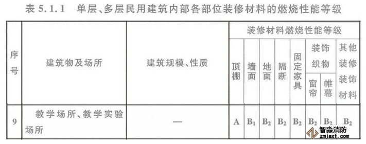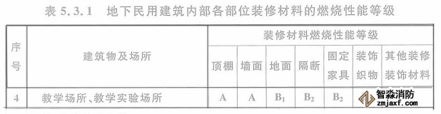 六、培訓(xùn)班設(shè)置在地下民用建筑時(shí),內(nèi)部各部位裝修材料的燃燒性能等級(jí),不應(yīng)低于《建筑內(nèi)部裝修設(shè)計(jì)防火規(guī)范》5.3.1的規(guī)定,參照“教學(xué)場(chǎng)所”執(zhí)行。