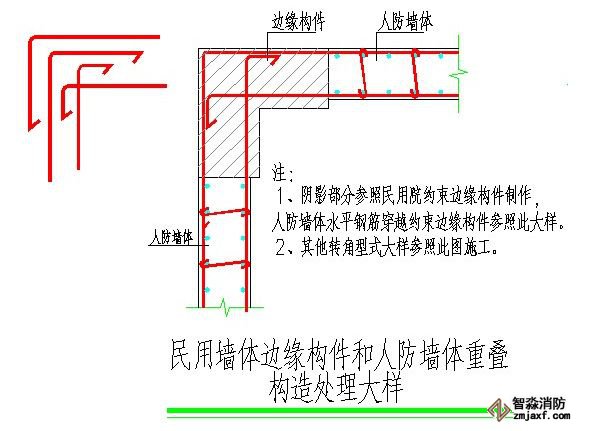 2、民用院剪力墻與人防墻體重合時的鋼筋處理是否正確