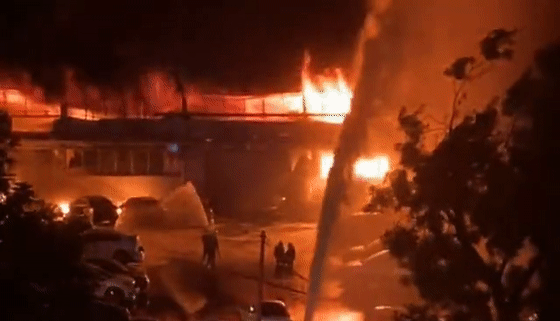 2020年8月11日晚上10時許,位于廣州花地大道某4S店突發(fā)大火。現(xiàn)場濃煙滾滾,火勢非常兇猛。
