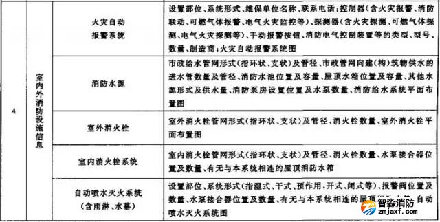 (6)消防設施一覽表,包括消防設施的類型、數量、狀態等內容;