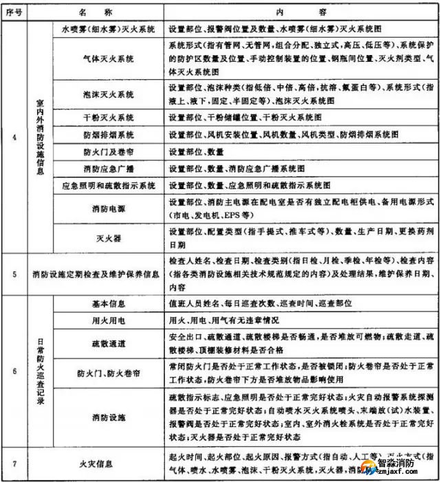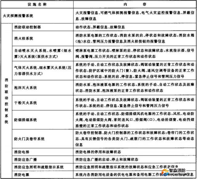 3、消防控制室內應保存規定的資料和下表2中規定的消防安全管理信息,并可具有向監控中心傳輸消防安全管理信息的功能。