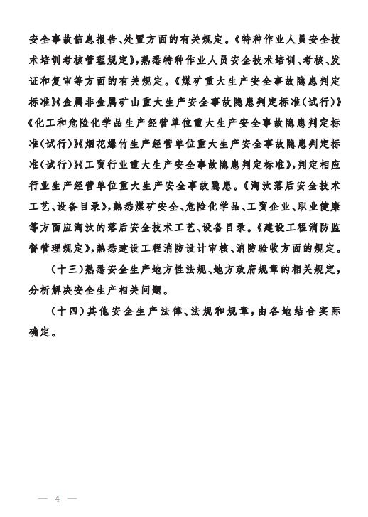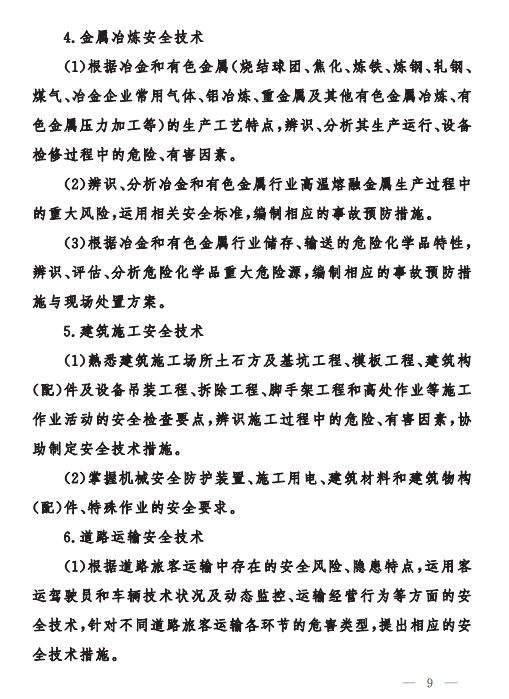 為做好中級(jí)、初級(jí)注冊(cè)安全工程師職業(yè)資格考試工作,按照《注冊(cè)安全工程師職業(yè)資格制度規(guī)定》《注冊(cè)安全工程師職業(yè)資格考試實(shí)施辦法》(應(yīng)急〔2019〕8號(hào))有關(guān)要求,應(yīng)急管理部組織編制了《中級(jí)注冊(cè)安全工程師職業(yè)資格考試大綱》《初級(jí)注冊(cè)安全工程師職業(yè)資格考試大綱》,經(jīng)商住房和城鄉(xiāng)建設(shè)部、交通運(yùn)輸部同意,人力資源社會(huì)保障部審定,現(xiàn)予以印發(fā)施行。