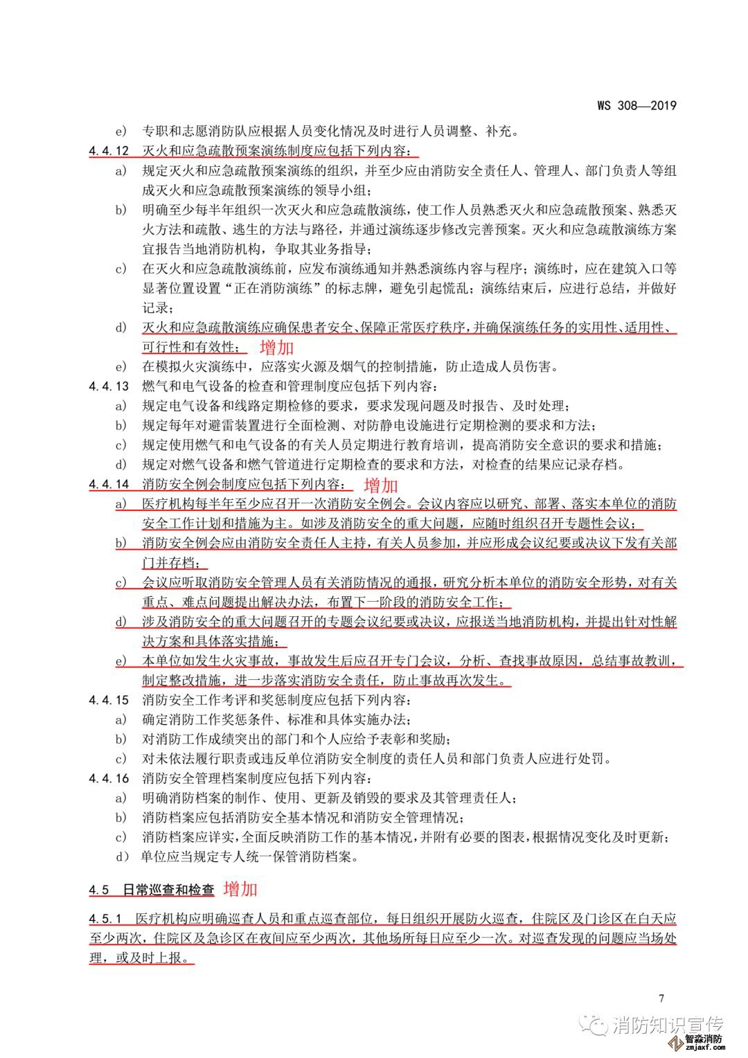 ——增加了對不同人員開展消防安全教育、培訓的要求(見4.4.3 b)、 d));