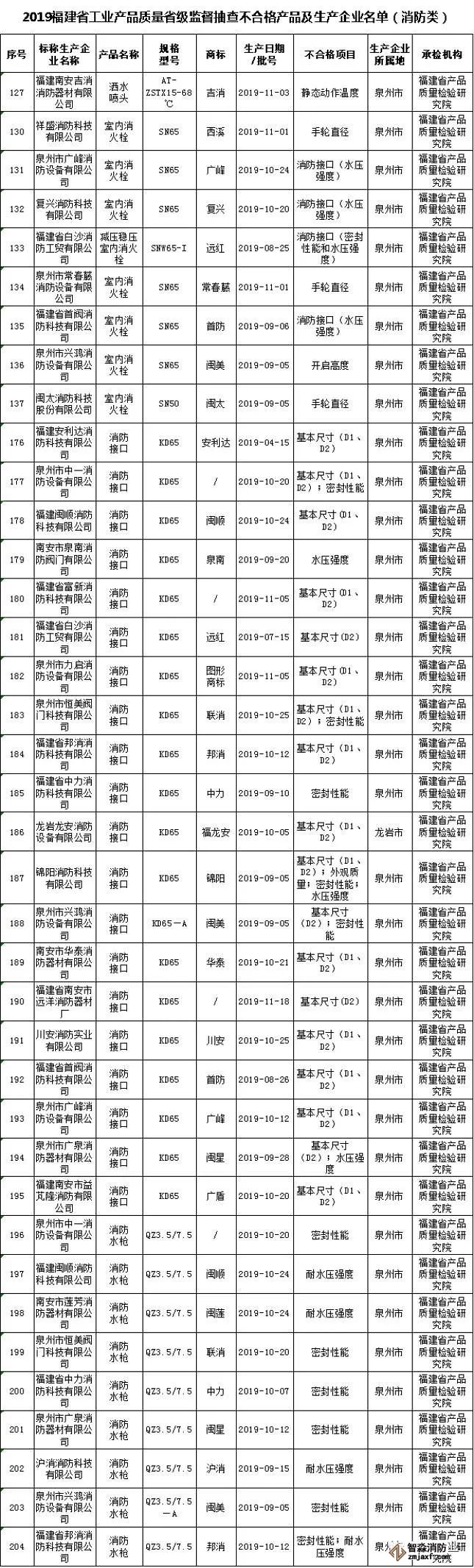 2019年福建省工業(yè)產(chǎn)品質(zhì)量省級監(jiān)督抽查情況發(fā)布,消防類多種產(chǎn)品不合格