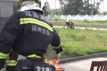 圖片中可以看到,可樂的效果竟然和水一樣,突然間的爆燃讓人始料不及。鐵鍋內的熱浪沖到了消防員的身上,如果不穿防護裝備的話,肯定會被燒傷。