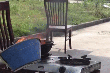 試想一下,如果是在家庭廚房內,竄出的火苗極有可能將人灼傷,甚至是點燃廚房。