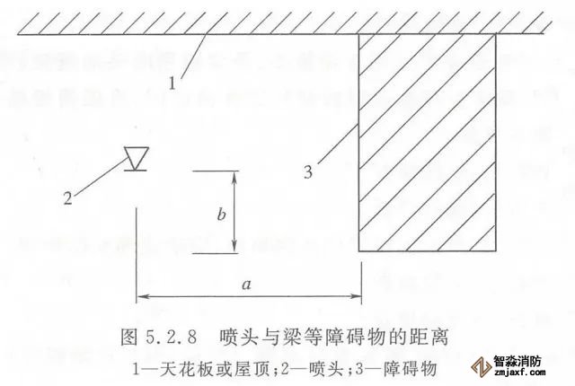 5.2.5 噴頭安裝時,濺水盤與吊頂、門、窗、洞口或障礙物的距離應符合設計要求。