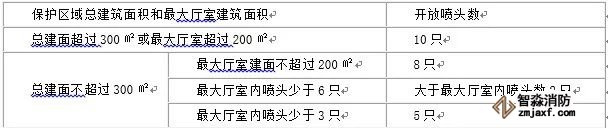 應(yīng)符合下表的要求。僅在走道設(shè)置單排閉式噴頭的閉式系統(tǒng),其作用面積應(yīng)按最大疏散距離所對應(yīng)的走道面積確定;裝有網(wǎng)格、柵板類通透性吊頂噴水強(qiáng)度應(yīng)按規(guī)定值的1.3倍確定;干式系統(tǒng)的作用面積按規(guī)定值的1.3倍確定。系統(tǒng)最不利點(diǎn)處噴頭的工作壓力不應(yīng)低于0.05Mpa,靜壓不應(yīng)小于0.10MPa。