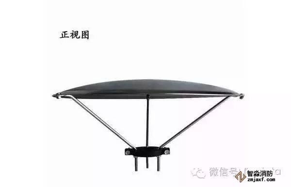 如上圖所示,消防集熱罩為半弧圓形,下面有個三腳托盤,托盤底部與消防噴淋頭進行固定,上面半弧圓形不銹鋼盤是集熱板。