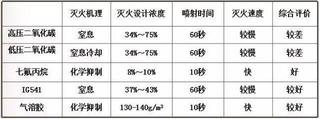 工程應用時,應綜合考慮:滅火可靠性、環保性、對設備和人員的安全性、工程造價、技術成熟性等因素,選擇最佳的滅火系統。