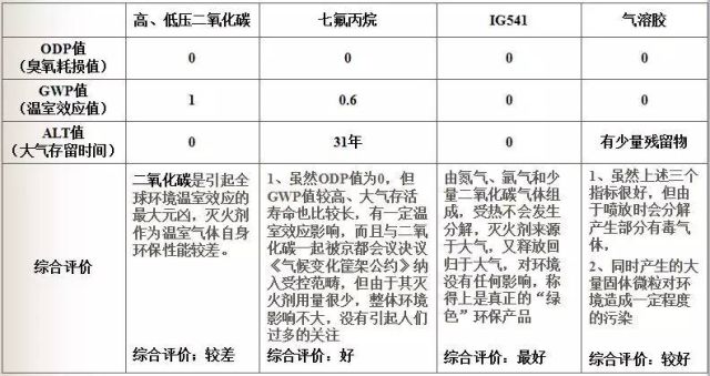 二氧化碳、七氟丙烷、混合氣體、氣溶膠等系統均被列入允許使用的環保產品。
