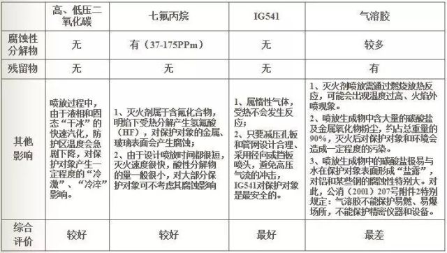 高、低壓二氧化碳、IG541、七氟丙烷、氣溶膠等氣體滅火系統基本上都具有不導電、腐蝕性小、無浸漬、滅火后不留痕跡的特點,總體來說對大多數保護對象,包括電器設備、儀器儀表、圖書檔案等都是安全的。